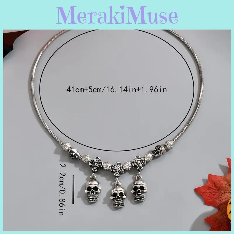 Halloween Style Dark Chain Necklace With Skeleton Head And Bat For Party Decor