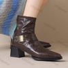 Dámské robustní kotníkové boty Dámské zipové Retro hnědé Měkká kůže Krátká bota Podzim Nové Čtvercová špička Neformální Vysoký podpatek Kotníkové boty Mujer