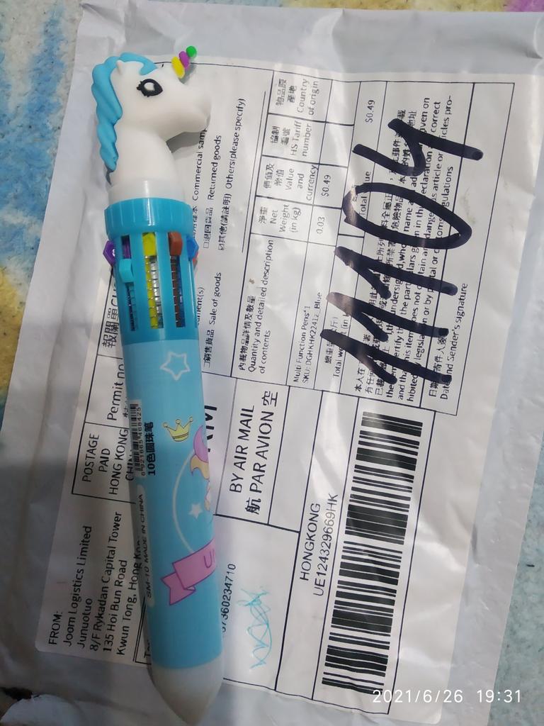 Pero dorazilo rozbité a protože bylo drženo na celnici, dorazilo až dnes.