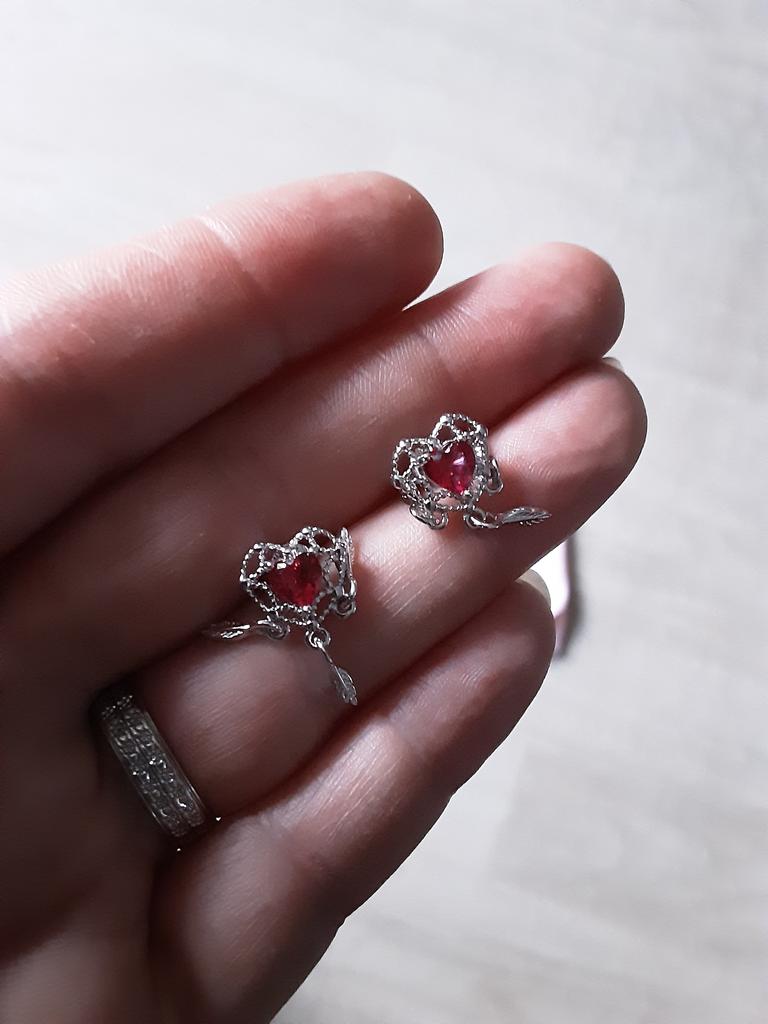 Pěkné malé náušnice, i když kámen je spíše růžový než červený.