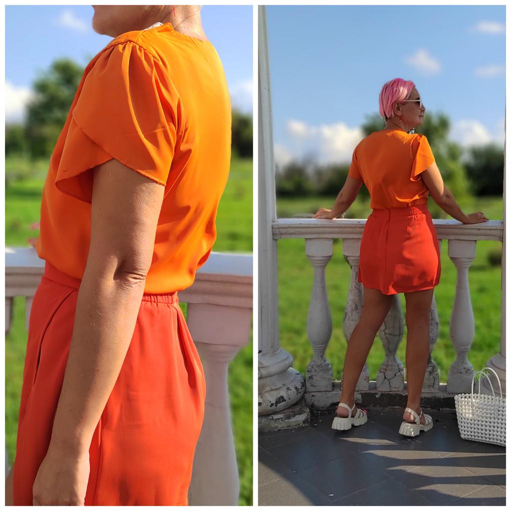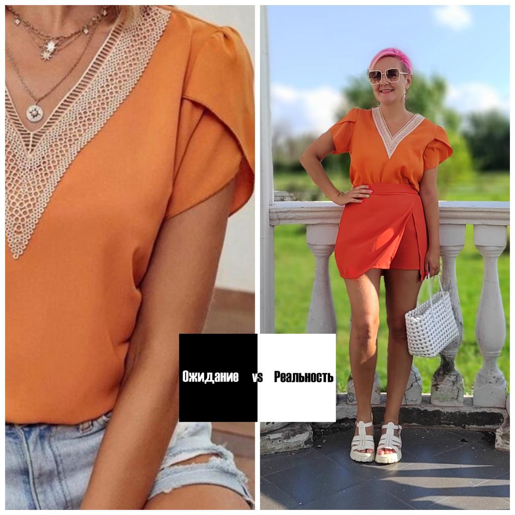 Letní nový top s krátkým rukávem, véčkovým výstřihem a okvětními rukávy