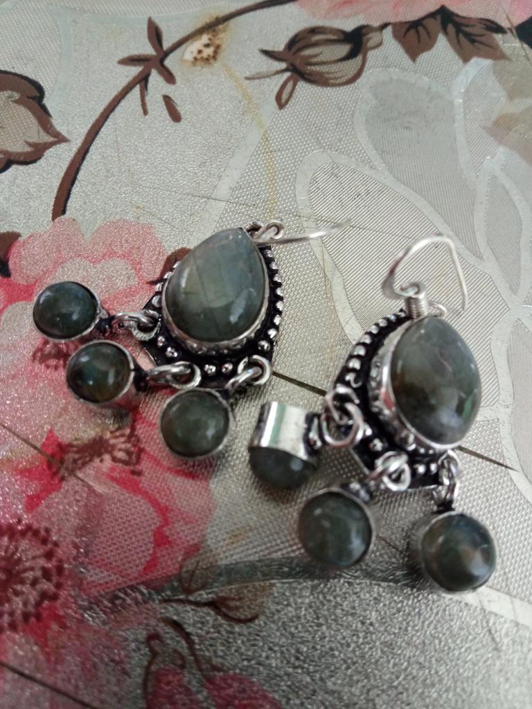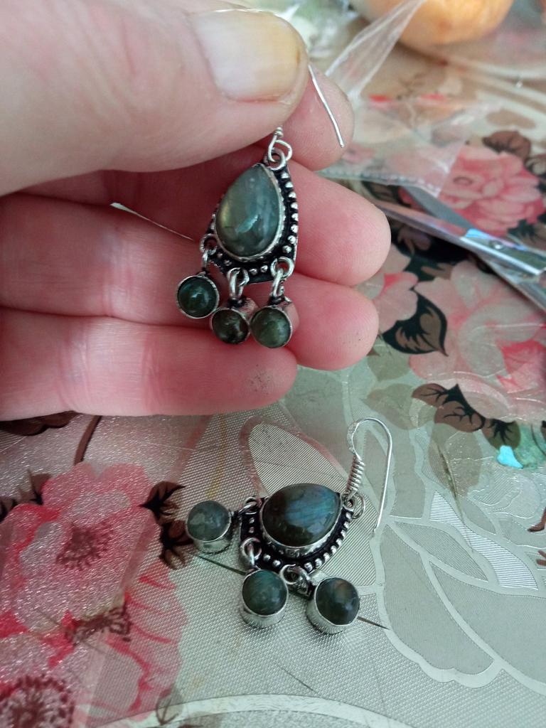 Náušnice z labradoritového drahokamu ručně vyráběné 925 z masivního stříbra na Vánoce