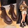 Nový podzimní styl Velkohlavé Boty na silné podrážce Středně vysoké kozačky Kávová barva a Černé Chelsea kotníkové boty Martensky