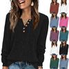 Autumn New Solid Color V-Neck Long-Sleeved Top Button Ladies Sweatshirt