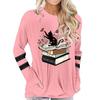Y2K Vintage Book Lovers Streetwear T-Shirts Women Funny Cat with Books Print T Shirts Fashion Long Sleeve Cotton Women Tops Tees