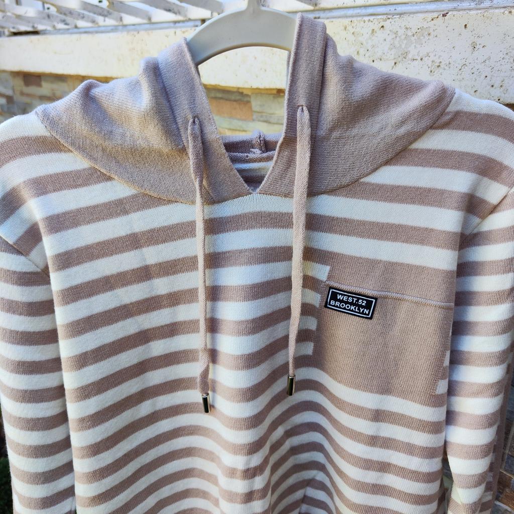 Dodejte svému šatníku ležérní a trendy nádech s touto pruhovanou mikinou s kapucí. Je pohodlná a stylová a snadno se nosí každý den.. Design : Horizontální béžové a bílé pruhy, ležérní styl. Kapuce: Nastavitelná s plochými šňůrkami a kovovými koncovkami. Módní detail: Náprsní nášivka "WEST.52 BROOKLYN" pro městský nádech. Materiál: Měkká síťovina příjemná na dotek. Střih: Volný a pohodlný, ideální pro vaše relaxační dny. Perfektní k džínám nebo ležérním kalhotám, tato pruhovaná mikina s kapucí se rychle stane nepostradatelnou součástí vašich každodenních outfitů.. Doporučuji tohoto prodejce ✅️ Doručeno za týden ✅️