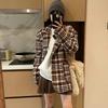 Elegantní kostkovaná tkanina Ženy Blazer Pocket Plus Sametový Zimní Causal Tweed Kabát Kancelářský dámský oblek