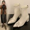 High Heeled Ankle Women's Boots 2024 New Pointed Velvet Sexy Women's Shoes Zipper Classic Japanese Boots Women's Boots Botas