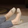 Fashion New Square Toe Thick Heels Mary Jane Shoe Women's Buckle Soft Soled Shoes Elegant Women Comfortable Low Heel Office Leather Shoe