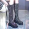 Fashion Fashion Crystal 9.5CM Women Knee High Platform Boots Wedges Genuine Leather High Heel Boots Slip On Autumn Winter Boots Woman