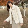 Dámská podzimní a zimní bunda z imitace králičích vlasů Středně dlouhý vlněný kabát Volný kabátek z jehněčí vlny s límečkem