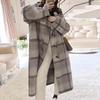 Nový zimní kostkovaný kabát v korejském stylu pro ženy střední délky ke kolenům