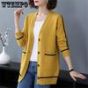 Jarní a podzimní pleteniny Dámský středně dlouhý kardigan s volným kabátem Dámský top