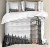Tea Party Bedding Set For Bedroom Bed Home London Newspaper Inspired Background with Grung Duvet Cover Quilt Cover Pillowcase