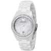 Dámské hodinky Emporio Armani AR1426 vyrobené z bílé keramiky. Vyznačuje se úžasnou kulatou lunetou se zářivými čirými kameny a elegantním perleťovým ciferníkem. Ciferník také obsahuje funkci data, jasné logo Emporio Armani na 12 hodin a stříbrné kombinované značky hodin. Hodinky se zapínají pomocí tlačítka na tenkém keramickém náramku a pohání je kvalitní quartzový strojek.