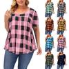 Children's Plus-size T-shirt Casual Fashion Plaid V-neck Short-sleeved Pocket Top