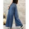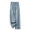 Light Blue High Waist Wide Leg Jeans Women's Micro Stretch Denim Pants Embroidered Straight Trousers