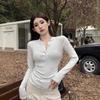 Autumn Women's Slimming Long-Sleeve Half-Open Collar Printed Top - Sexy, Pure Style