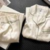 Women's Satin Pajama Set Spring Classic Sandpainting Pajama Set Long Sleeve Button Green Pajama Lounge Pant Women Sleepwear