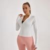 "Tight Fit Women's White Long Sleeve Hooded Yoga Jacket"