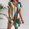 Dámské šaty ve svátečním stylu Collision s krátkým rukávem Letní cestování Volný výstřih do V Středně dlouhé šaty do A