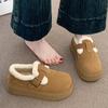 Women's Thick Soled Snow Boots Autumn Winter Plush Boken Shoes Retro Height Increasing Warm Anti Slip Cotton Shoes Loafers
