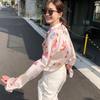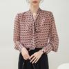 Clearance Women's Silk Long-Sleeve Shirt with Colorful Heart Print & Removable Bow