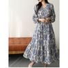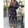 Summer Loose Retro Women's Floral Dress Lantern Sleeve V-neck Pleated Printed Women's Dress