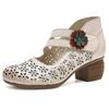 2025 Letní Móda Vykrojené Dámské Lodičky z Pravé Kůže Etnický Styl Mělké Dámské Boty Střední Podpatek Silný Podpatek Dámské Boty