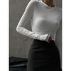 Long Sleeve Top White T-Shirts Women Basic Crop Top Autumn Pollover Solid Skew Neck T Shirt Streetwear Basic Black Y2K Tees