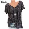 Letní ležérní dámské plus size tričko s krátkým rukávem, volné, s potiskem, s výstřihem do V