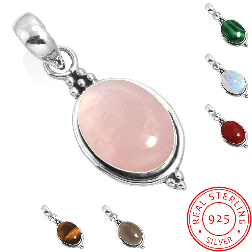925 Sterling Silver Pendant Women Gemstone Handmade Jewelry Birthday Gift Malachite Moonstone Rose Quartz Red Stone Smoky Topaz Tiger Eye Statement