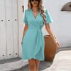 Dámské přiléhavé šaty s výstřihem do V, krátkým rukávem, áčkového střihu, s vysokým pasem, jednobarevné, s nepravidelným jednokrokovým lemem, jarní/letní šaty S-XL