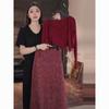 French Vintage Sexy Chic Women's Dress Shirt Set Two-Piece Outfit Autumn Fashion Age-Defying Strapless Gown with Blouse