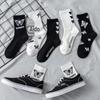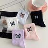 3 Pairs New Women Kawaii Cotton Butterfly Socks Female Lady Black White Harajuku Middle Tube Cartoon Socks For Women