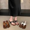 Niche design slope heel flip-flops shoes women's outer wear 2025 summer new silver sandals