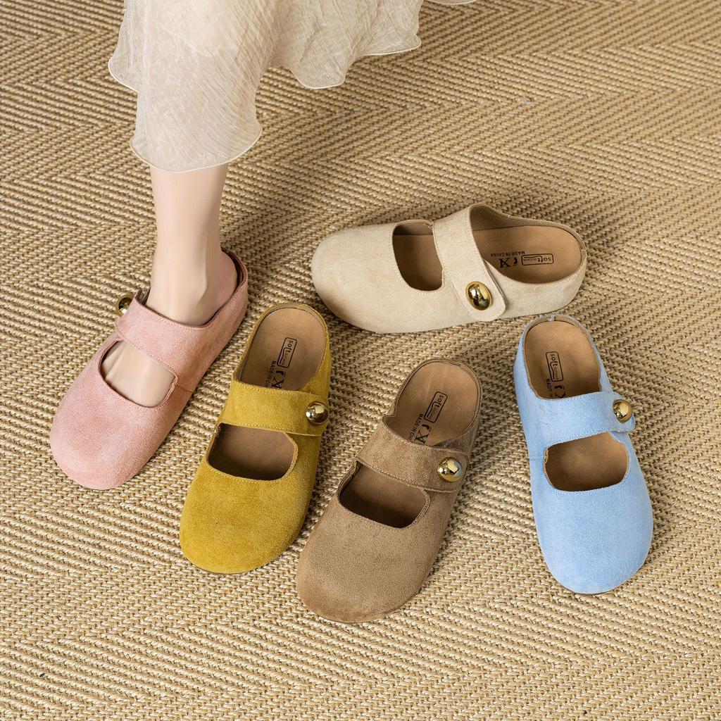 Baotou half slippers women's outer wear 2025 spring and summer new Velcro shallow mouth flat bottom versatile casual one-pedal women's shoes