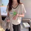 Pure cotton short-sleeved v-neck t-shirt women's loose summer casual versatile front shoulder pure cotton chicken heart collar top 2025 new