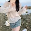 French V-Neck Ruffle Chiffon Blouse - Women's Summer Sun Protection Cardigan