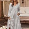 Spring and Autumn Dress Cotton and Hemp Retro Casual Long Sleeve Skirt