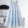 Women's Unique Beautiful Tiered Skirt Elegant High Waisted Blue Chiffon A Line Half Skirt