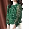 Spring Summer Women's Clothing Round Neck Pullover Button Lantern Long Sleeve Chiffon T-shirt Casual Elegant Fashion Tops