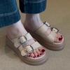 Casual Shoes One-shoulder Shoes Muffin Thick-soled Versatile Flip-flops with Buckles