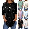 Summer Women's Fashion Casual Three Quarter Sleeve Flower Buttons Print Round Neck Pullover Top Blouse
