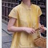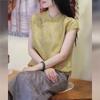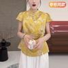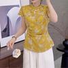 2025 summer retro luxury yellow printed shirt mother style daily wear shirt