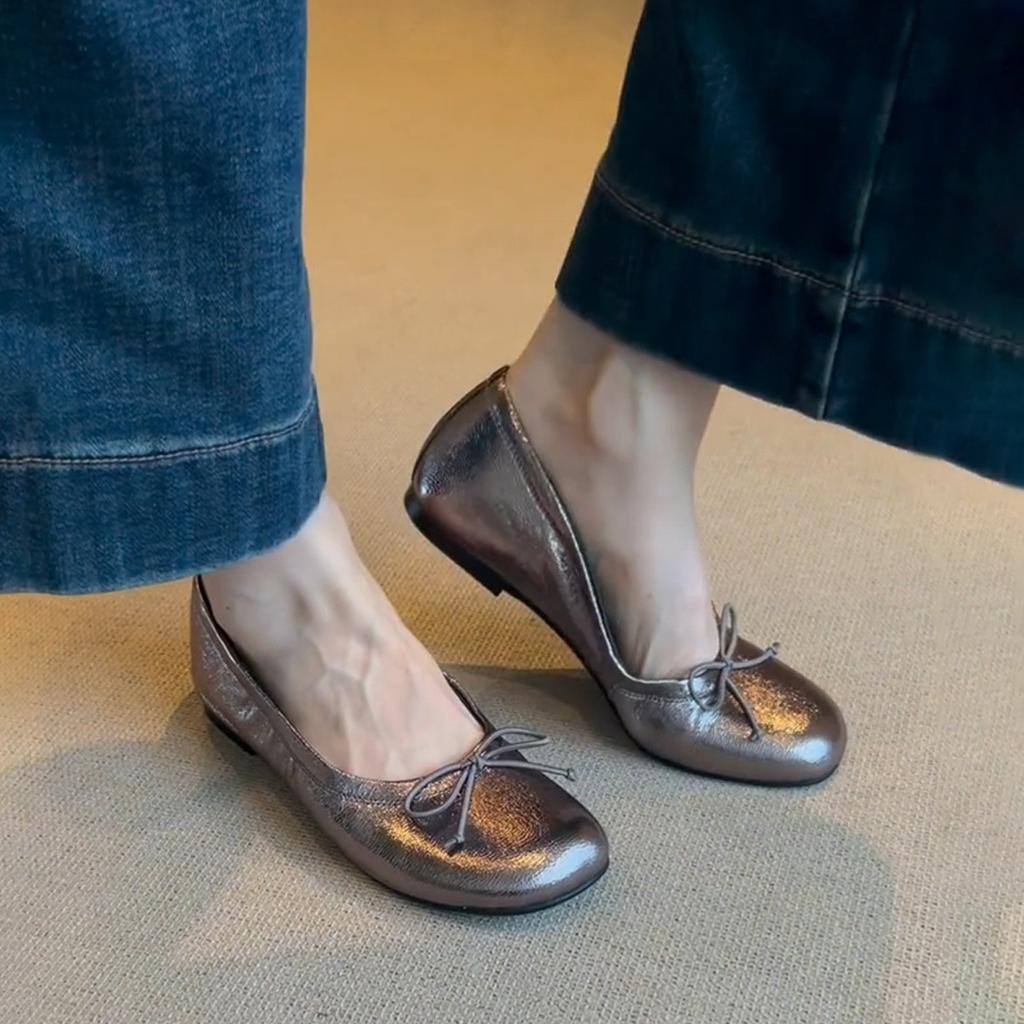 Sheepskin version~ round head bow flat shoes shallow mouth versatile one pedal French ballet single shoes women's shoes