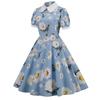 Dámské ležérní módní šaty s límcem pro panenky s krátkým rukávem a potištěným lemem