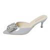 Baotou Semi-slippers Women's Summer Wear Rhinestone Square Buckle Patent Leather Pointed Toe Shallow Mouth Low-heeled High Heels