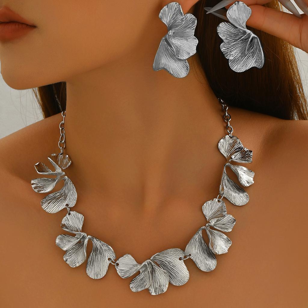 Wind metal necklace set personalized exaggerated flower pleated design earrings versatile niche jewelry women
