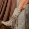Winter Retro minimalist Women Fringes Thick Heel High Boots Pointed Toe Outdoor Fashionable versatile Platform Shoes Women Shoes